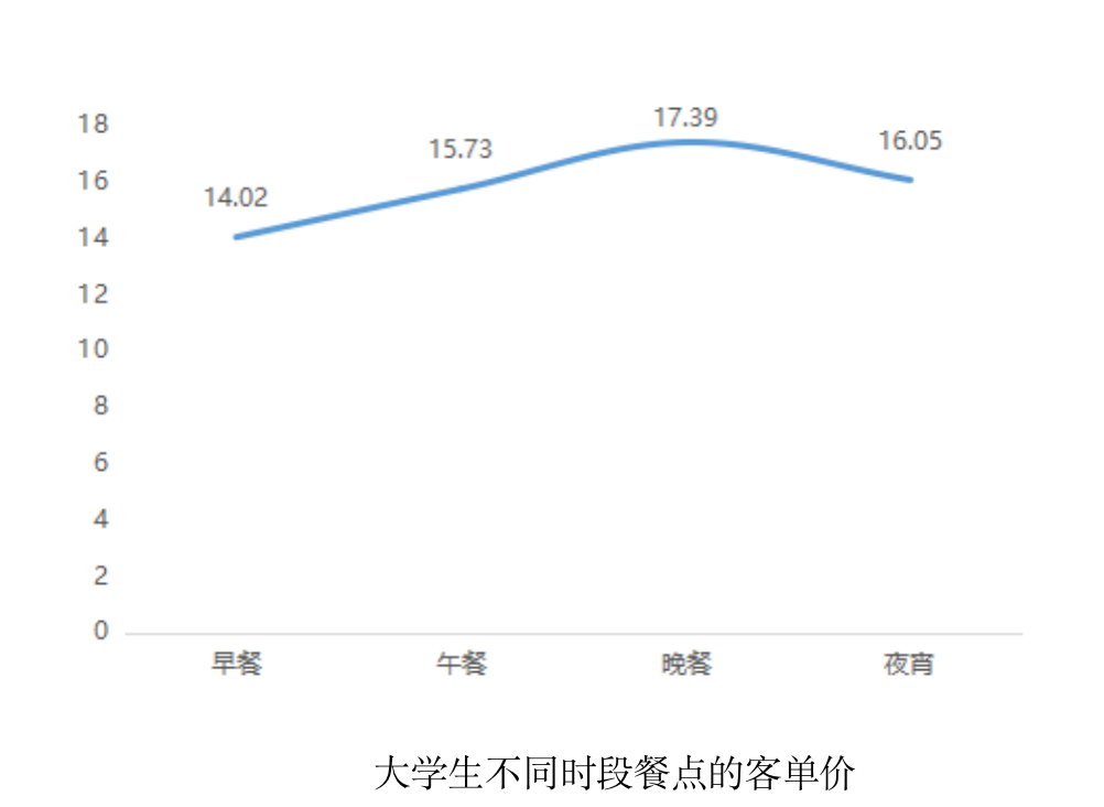 据调研显示,大学生在不同餐点的订餐波峰时间点分别是:-9点,午餐-11点,晚餐-17点,夜宵-21点;餐点的客单均价为15.79元,茶叶蛋和黄焖鸡是其日常最爱的餐点。
